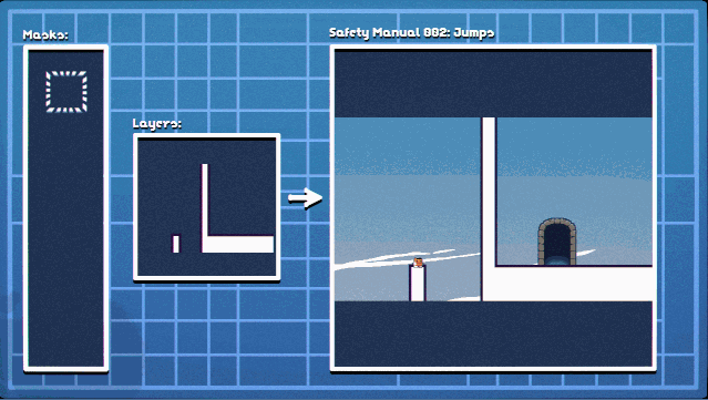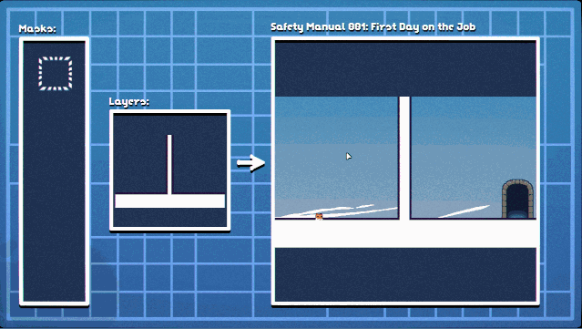 Oops! All Layers is a fast blueprint oriented puzzle platformer where you don't just run through levels, you alter them. Each stage is a safety manual map made of overlapping layers. Just drag and position masks over the blueprints and you can unmask parts of the world to SLIP through the level in real time while making way for you to reach the door.